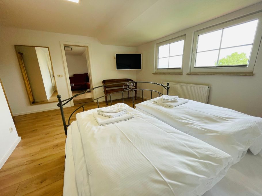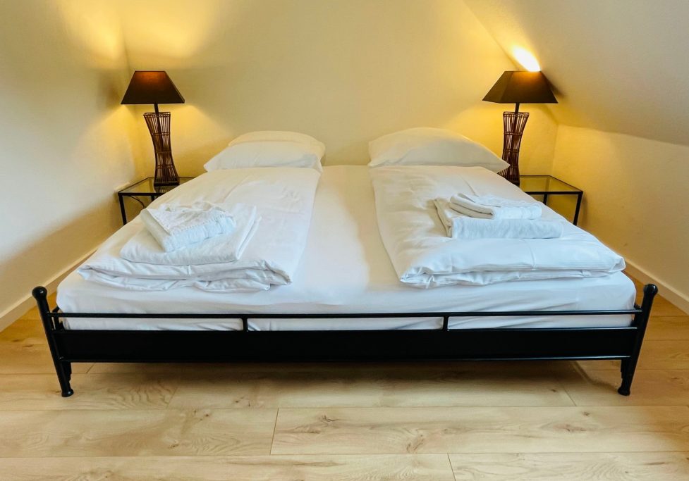Die 2 Zimmer Ferienwohnung mit 38 m² liegt im Obergeschoss (rechts) der Herberge