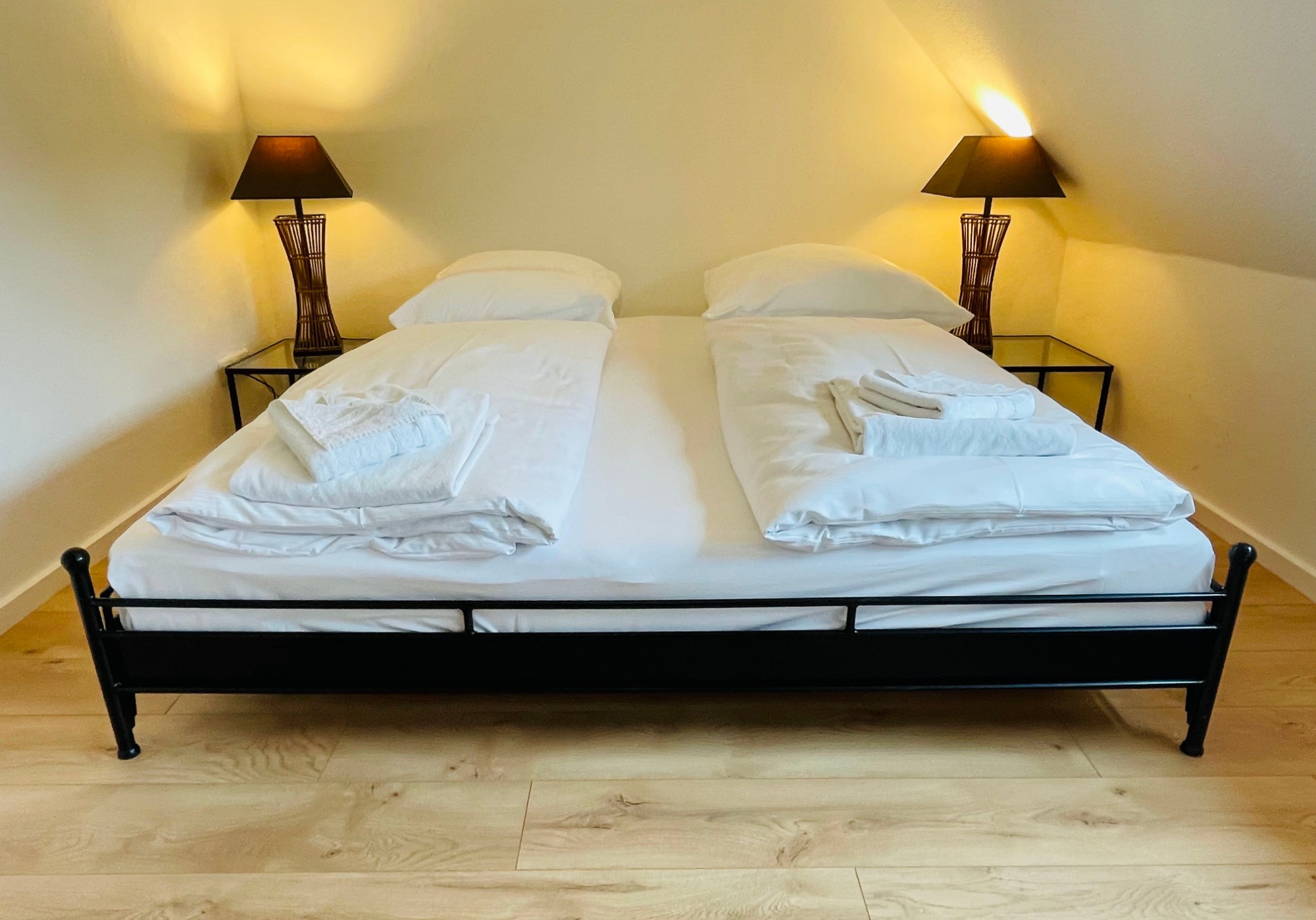 Die 2 Zimmer Ferienwohnung mit 38 m² liegt im Obergeschoss (rechts) der Herberge